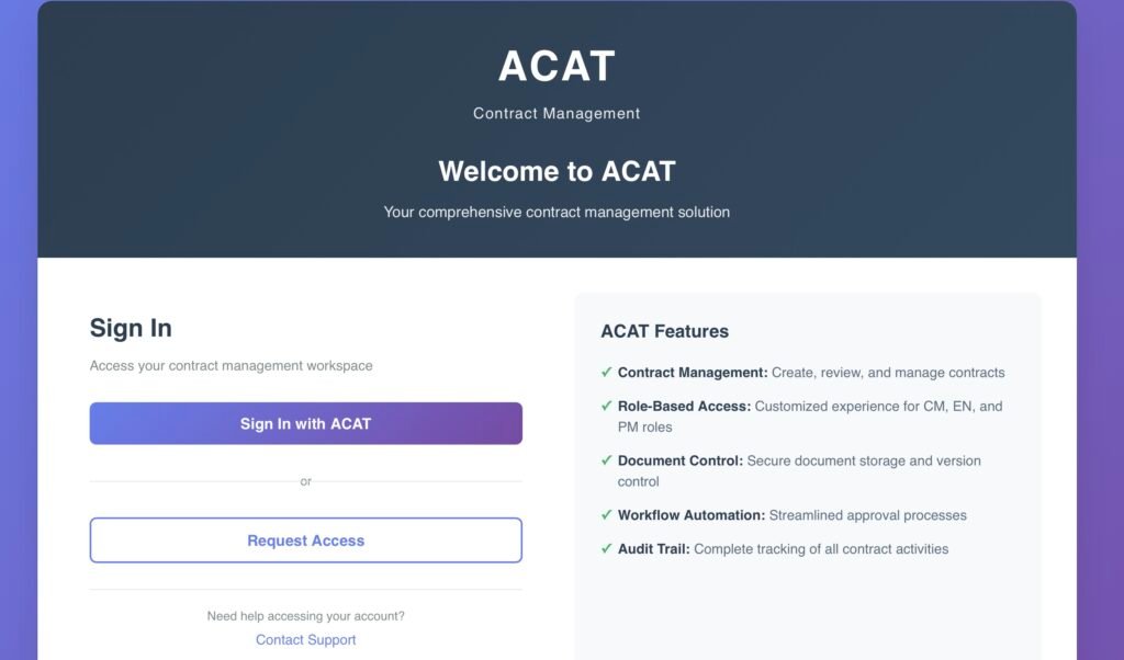 Future growth includes expanding ACAT into a full contract creation and clause selection tool, reducing administrative burden and ensuring compliance from the outset. Additionally, by utilizing Defense Acquisition University (DAU) training modules will embed education directly into the workflow, allowing users to access targeted learning resources while managing real-world contracts. This evolution positions ACAT not just as a management tool, but as a complete acquisition lifecycle solution—supporting everything from requirement development to contract closeout.